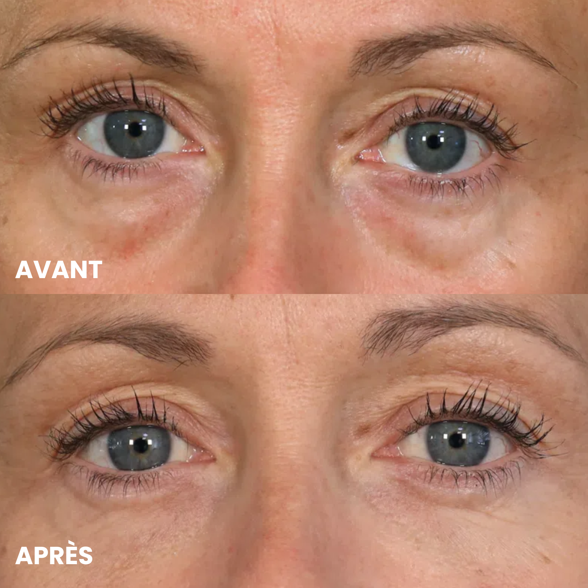 L’hydratation et l’effet repulpé sont souvent visibles dès les premières utilisations. Les améliorations plus profondes sur les cernes, poches et ridules apparaissent généralement après 1 à 2 semaines d’utilisation régulière.